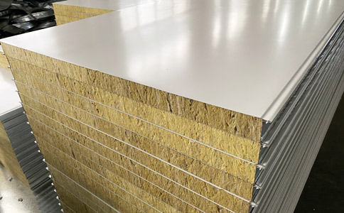 巖棉彩鋼夾芯板其芯材是以玄武巖及其它天然礦石等為主要原料,經高溫熔融成纖維,加入適量粘結劑,固化加工而制成的。是同類(夾芯板系列)中耐火性能最強的一種新型防火板材。